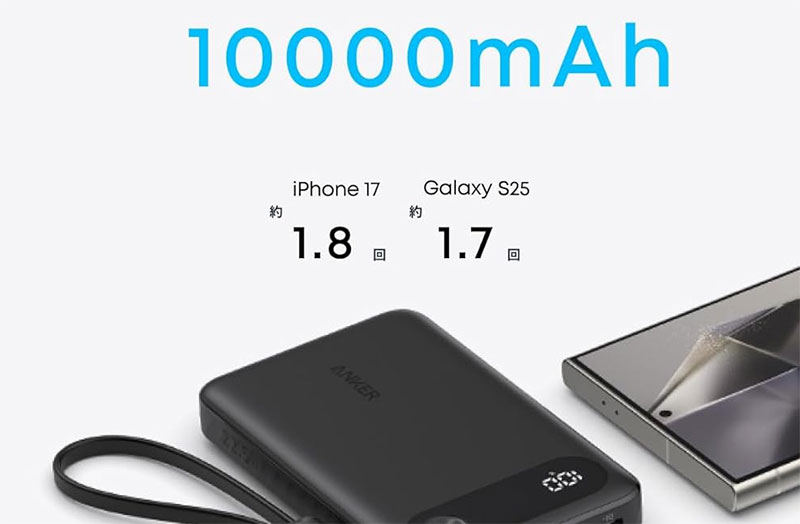 | Anker Power Bank 10000mAh | 10,000mAh | 22.5W | あり | ★★★★★ | ★★★★★ |