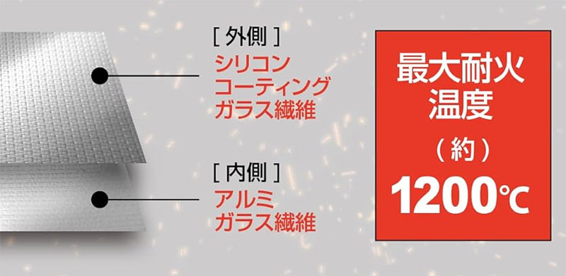 素材はグラスファイバーやシリコンコーティングが主流で、どちらも十分な耐火性があります。